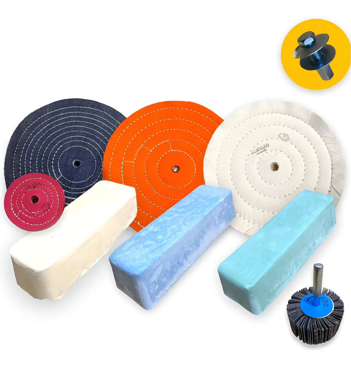 O Kit193 foi projetado para atender todas as suas necessidades de polimento, proporcionando um acabamento impecável em superfícies de alumínio, inox, tanques e rodas. Composto por 9 peças especialmente selecionadas, esse conjunto oferece uma combinação eficiente de ferramentas e materiais para resultados profissionais em polimento e brilho.